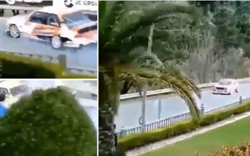 Footage broadcast by Portuguese media showed the horror moment the driver lost control of his vehicle and smashed into a tree after hitting several spectators.