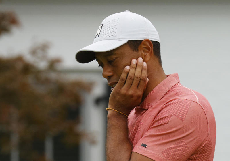 Woods was driving through a sweeping, downhill stretch of road through coastal suburbs of Los Angeles when his SUV struck a sign, crossed over a raised median and two oncoming lanes before it toppled down an embankment, coming to a halt on its side.