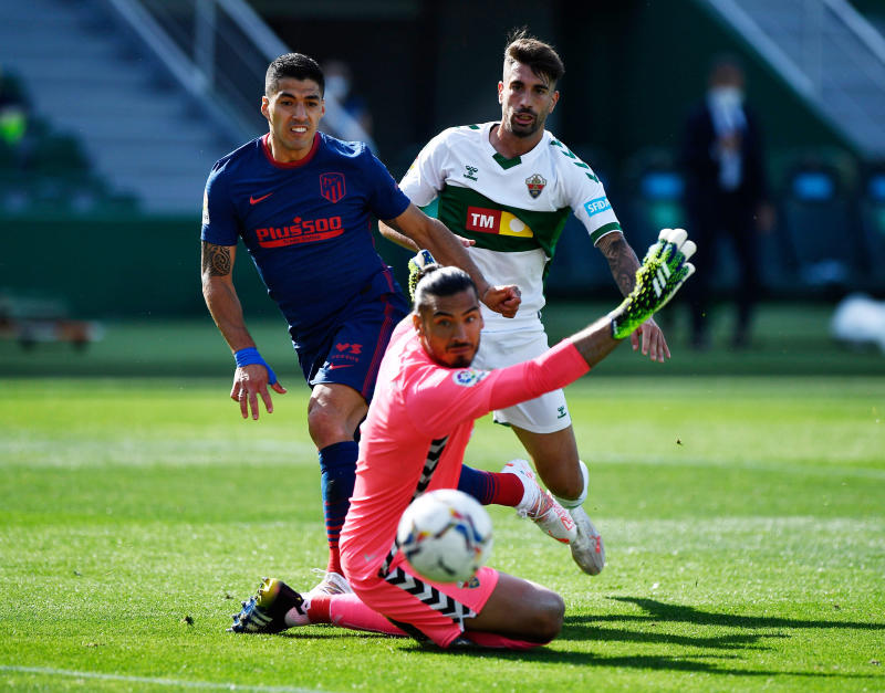 Atletico Madrid stayed in charge of La Liga's four-way title race by earning a nerve-shredding 1-0 victory at struggling Elche on Saturday, riding their luck to the extreme when the hosts missed a penalty in stoppage time.