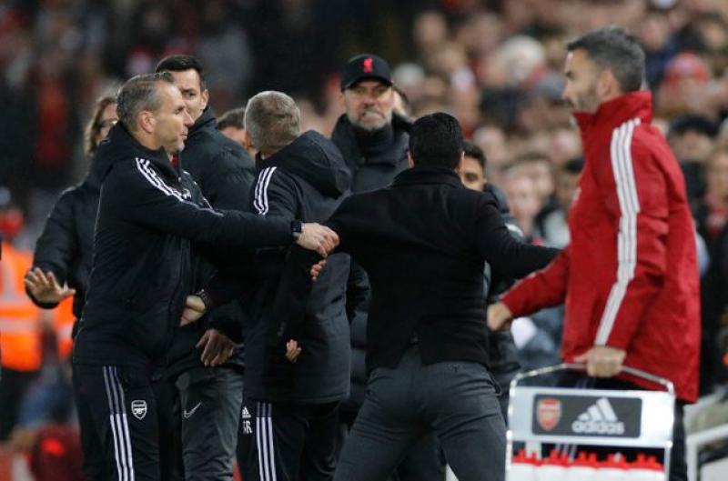 A touchline row between Liverpool manager Juergen Klopp and Arteta fired up the home fans and players at Anfield before a four-goal salvo sent Arsenal packing.