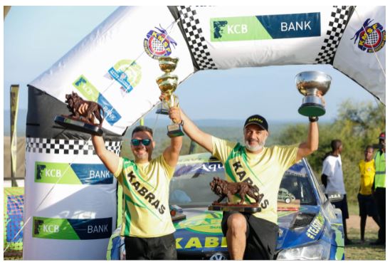Carl Tundo savours his overall KNRC victory after finishing third overall in the series last leg in Ilbisil, Kajiado County on Sunday Dec 12 ,2021. [photo courtesy]