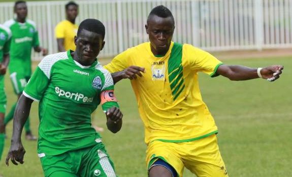 Homeboyz Fc player Esiye Estone (right) fight for the ball with Gor mahia player Omondi Bonface at Bukhungu stadium of Kakamega on May 9, 2018. BY BENJAMIN SAKWA