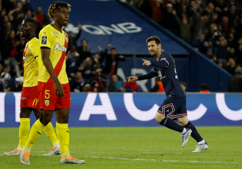 Paris St Germain v RC Lens - Parc des Princes, Paris, France - April 23, 2022, Paris St Germain's Lionel Messi celebrates scoring their first goal [Reuters, Christian Hartmann]