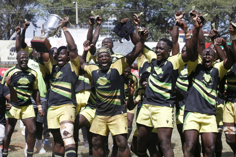 Kabras Sugar players celebrate after winning Enterprise Cup last month. [Stafford Ondego, Standard]