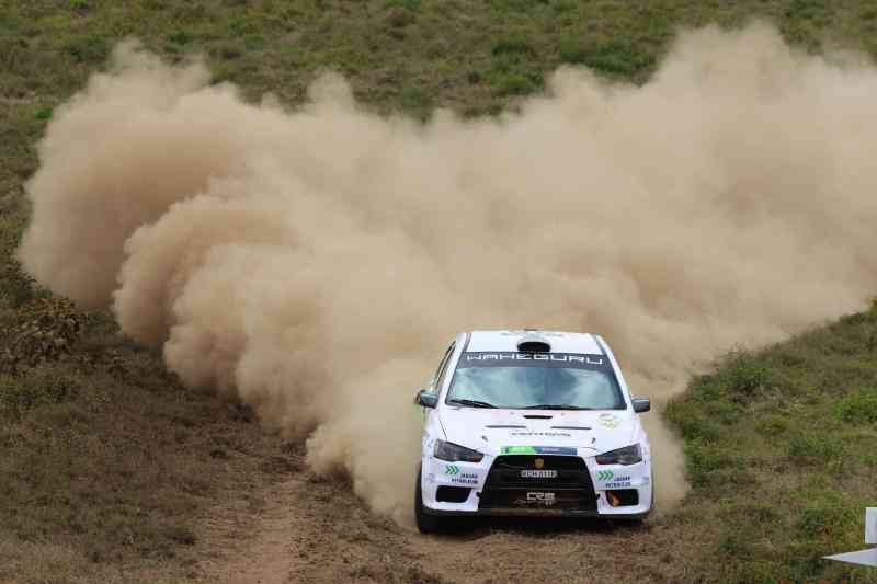 Jasmeet Chana navigated by Ravinder Chana driving Mitsubishi Lancer cruises through Oserian section during WRC Safari Rally Kenya 2021 at Oserian section in Naivasha on June 25, 2021. [Stafford Ondego, Standard]
