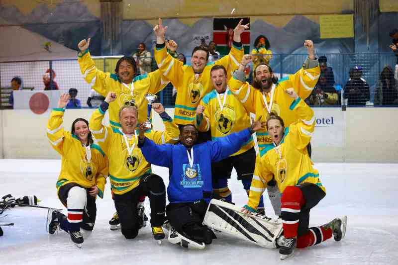 Howe Cheetahs celebrate after winning the Kenya Ice Hockey Friendship League title. [Kelly Ayodi, Standard]
