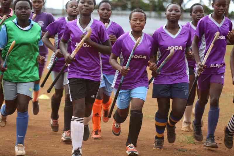 St Joseph Girls Kitale Hockey team in practice at their grounds a head of the National Secondary School Games scheduled on Tuesday April 25, 2023 in Eldoret. [Peter Ochieng, Standard]