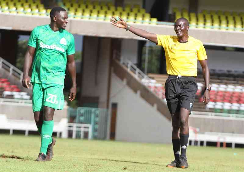 Center Referee Hillary Ochieng give direction in Gor Mahia and FC Talanta match during FkF Premier League match at Kasarani stadium. [Jonah Onyango, Standard]