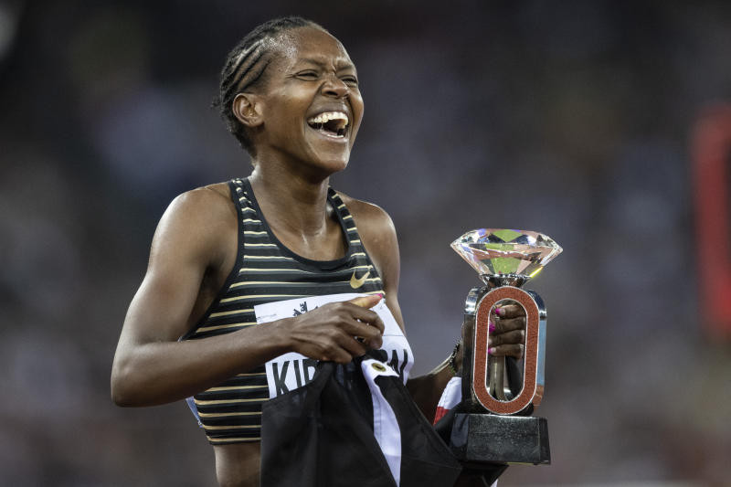 Faith Kipyegon of Kenya reacts after winning the 1500m Women during the Weltklasse IAAF Diamond League international athletics meeting last year.[AP]