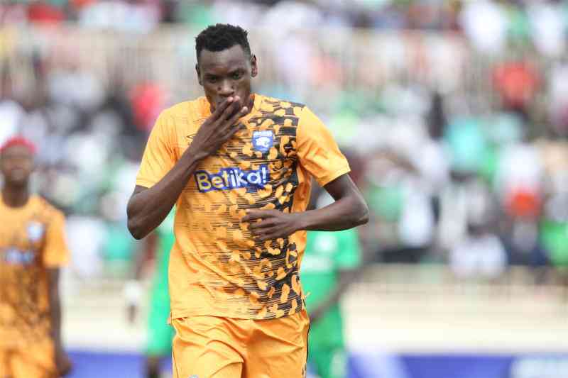 AFC Leopards' Victor Omune celebrate his goal against Gor Mahia during FkF Premier League derby match at Nyayo National Stadium. [Jonah Onyango, Standard]