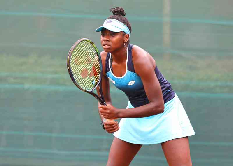 Kenya's Angela Okutoyi in action during the W15 Nairobi World Tennis Tour last year. [Kelly Ayodi, Standard]
