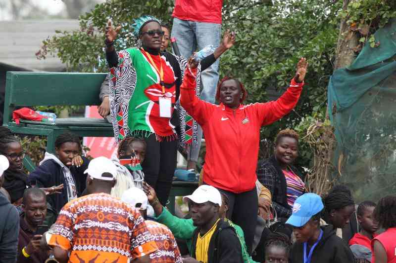 Fans celebrate during the Billie Jean King cup Africa group III match against Nigeria's Quadre Baraka Oyinlomo at Nairobi Club. [Jonah Onyango, Standard]