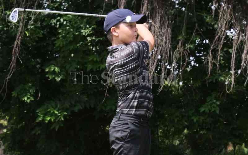 Diamond Leisure Resort's youthful Golfer Lucas Kampa sends his winning drive to the 11th greens during the KAHC Annual Golf tournament at Nyali Golf and Country club course in Mombasa County on Saturday.[Maarufu Mohamed,Standard].