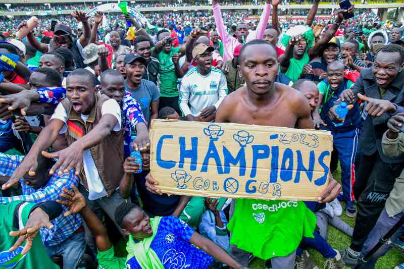 Gor Mahia fans celebrate after clinching the FKF Premier League 2023 title against Nairobi City Stars at Kasarani Stadium. [Jonah Onyango, Standard]
