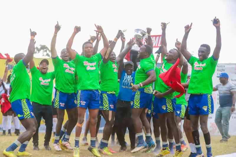 Menengai Oilers players celebrate after winning the Prinsloo sevens at Nakuru Athletics Club last year. [Jimmy Mburu,Standard]