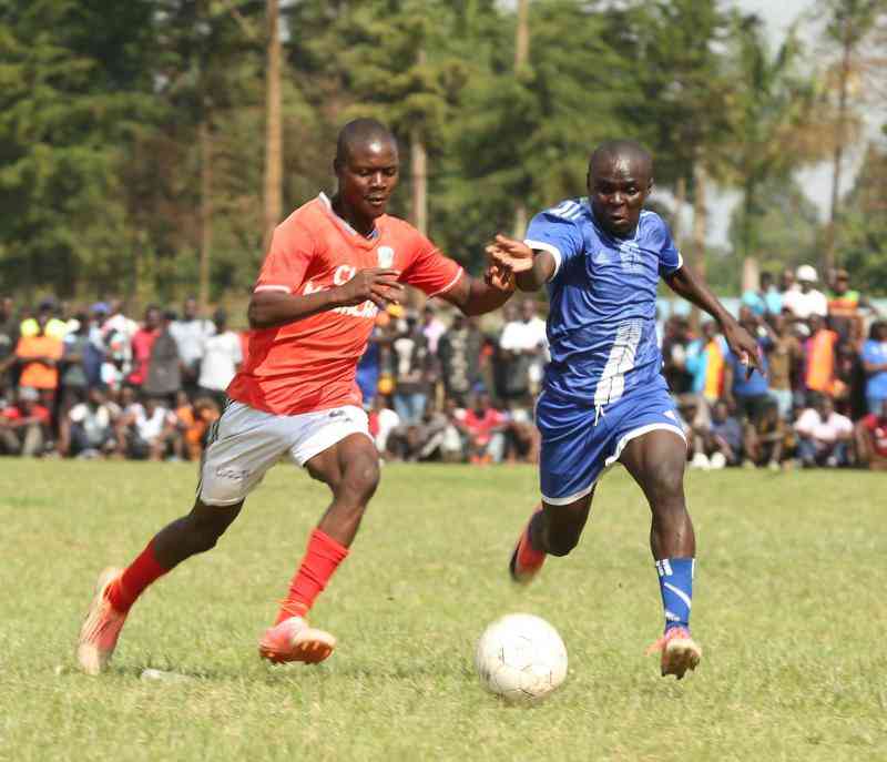 Football action between Musingu Boys High School and Lugusi High School. [Mumo Munuve, Standard]