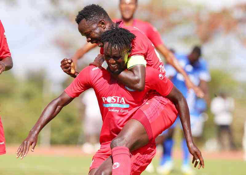 PostaRangers FC forward Patrick Otieno celebrate with his captain Kennedy Odhiambo after scoring against Bandari FC during their FKF Premier League match at Kasarani Annex in Nairobi on October 28, 2023. [Stafford Ondego, Standard]
