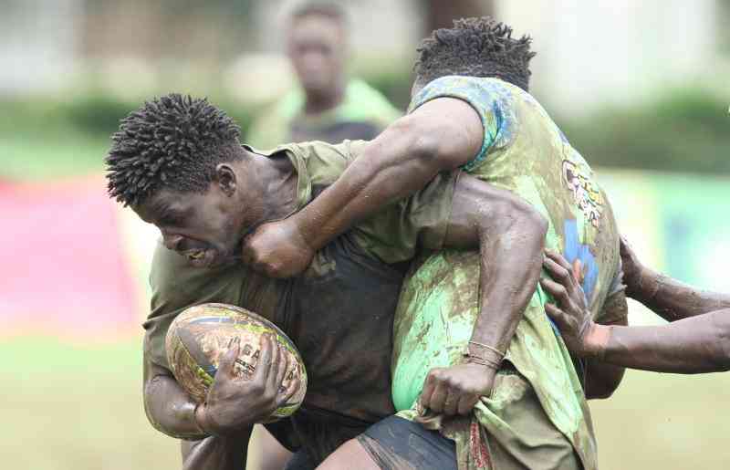 Cheetahs' Collins Indeche is tackled by Christopher Otieno of Buffaloes during the Rugby Super Series 2024 match at RFUEA. May 4, 2024. [Jonah Onyango, Standard]