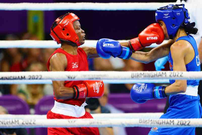 Kenya's Christine Ongare (left) in action against Priyanka Dhillon of Canada. [File]