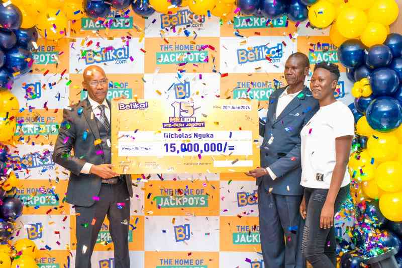 Betika's Mutua Mutava (left) with Nicholas Were and his daughter Lydia. [Jonah Onyango]