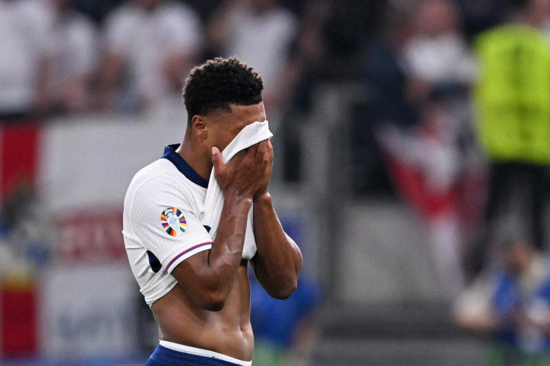 England's forward Ollie Watkins reacts at the end of their match against Denmark. [AFP]