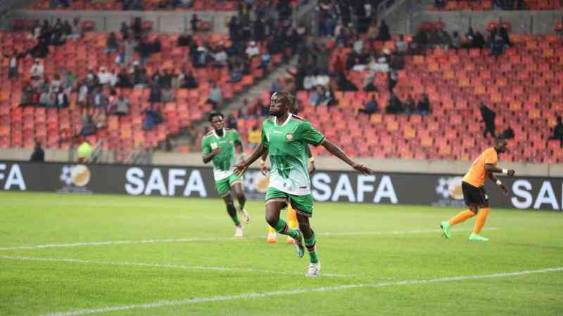 Kenya's Patrick Otieno celebrates after scoring against Zambia. [FKF Media]