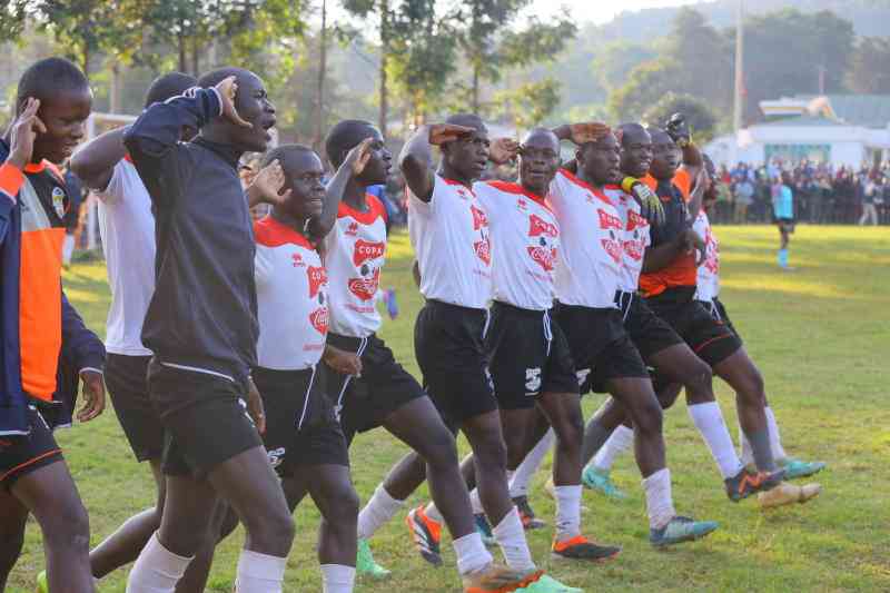 Agoro Sare players celebrate after scoring against Kisumu Day during Nyanza Region Secondary school games at Kisii School. [Sammy Omingo, Standard]