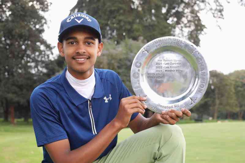 Limuru Junior Open 2024 overall boy winner, Harish Shashwat with his title at the Limuru Golf and Country Club, August 6, 2024. [Mose Sammy, Standard]