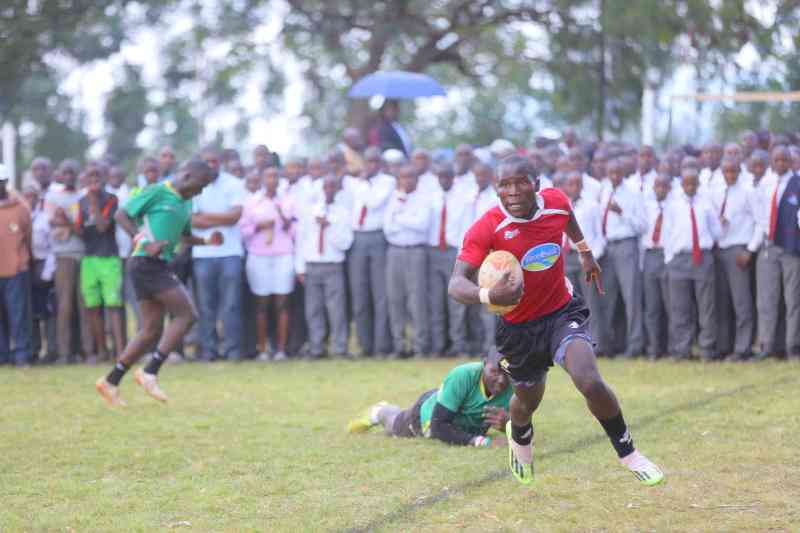 Maseno School Rugby players in action against St Marys Yala during Nyanza Regional secondary School games at Cardinal Otunga Mosocho.(Sammy Omingo,Standard)