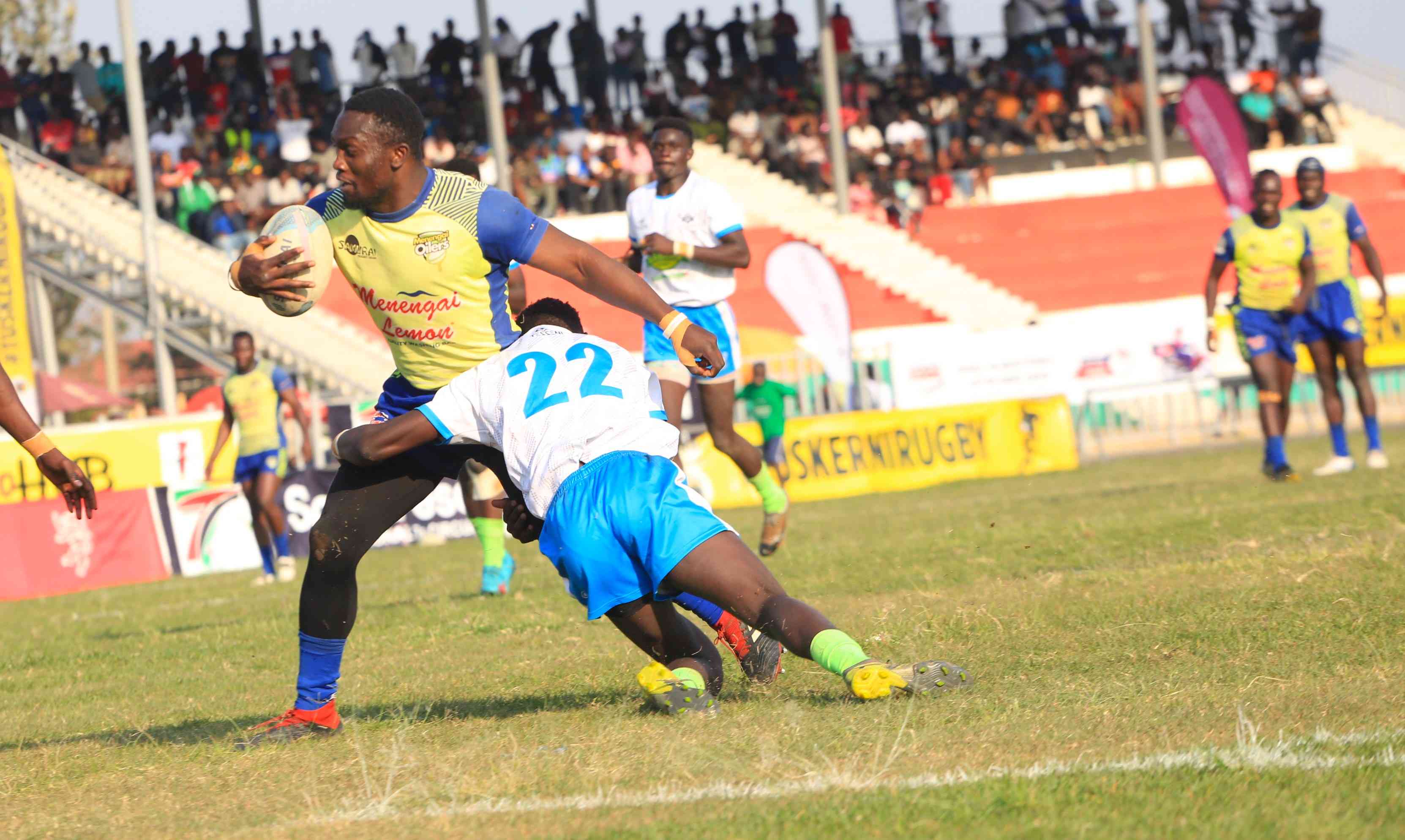Menengai Oilers'Beldad Ogeta (left) in action against Kabras Sugar during Dala Sevens finals.[Washington Onyango,Standard]