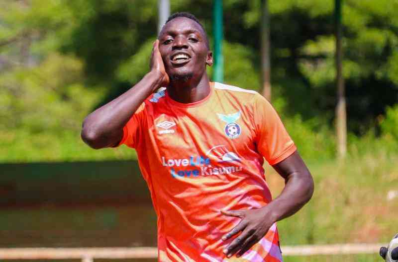 Kisumu All Stars' Willis Otendah celebrate after scoring.[Washington Onyango,Standard]