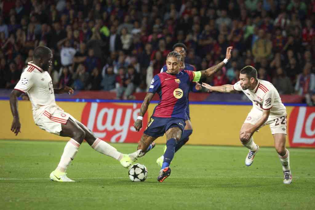 Raphinha of FC Barcelona competes during the UEFA Champions League day 3 football match between FC Barcelona and FC Bayern Munich at the Estadi Olimpic Lluis Companys in Barcelona, Spain. [AFP]