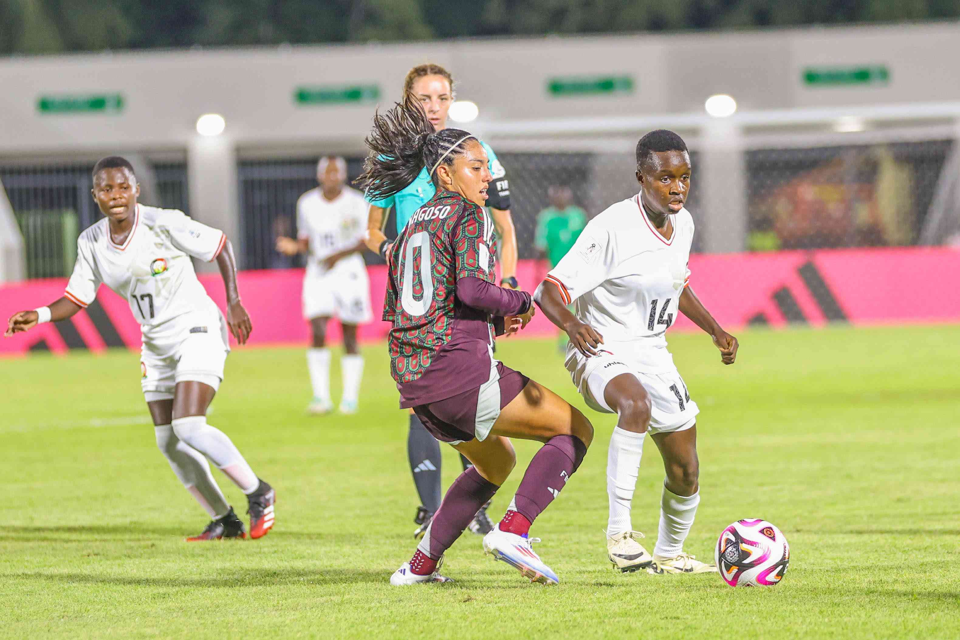 Lornah Faith (Jersey 14) during her exploits against Mexico on Thursday. [FKF]