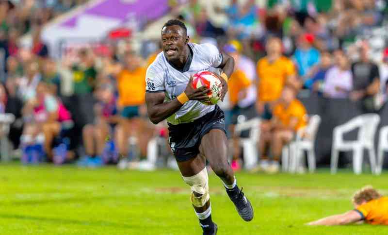 Shujaa winger Patrick Odongo in action against Australia at Dubai Sevens. [Kenya Sevens]