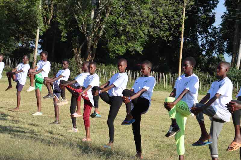 Girls from various schools in the North Rift region participate in Holiday Training caps at Hill School ahead of school games next year. [Peter Ochieng, Standard]