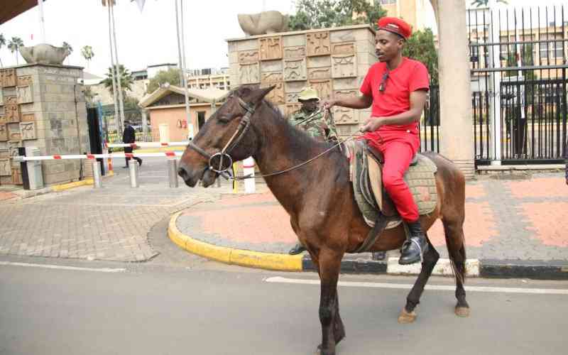Eric Omondi on a horse outside Parliament Buildings on Friday, June 21, 2024. [Elvis Ogina, Standard]