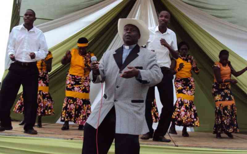 Veteran Kalenjin gospel musician Pst Joel Kimetto performs during a past function. [File]