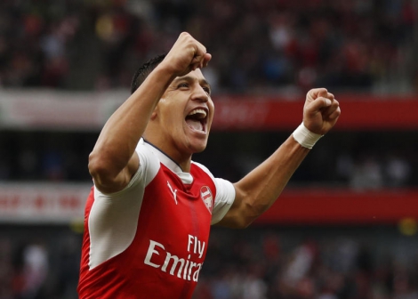 Britain Football Soccer - Arsenal v Chelsea - Premier League - Emirates Stadium - 24/9/16 Arsenal's Alexis Sanchez celebrates scoring their first goal Action Images via Reuters / John Sibley Livepic EDITORIAL USE ONLY.