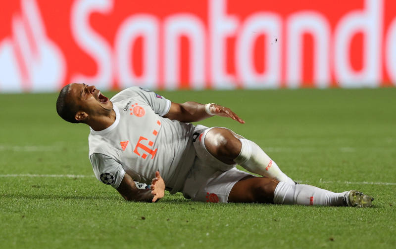Bayern Munich's Thiago reacts after being fouled [REUTERS/Rafael Marchante/]
