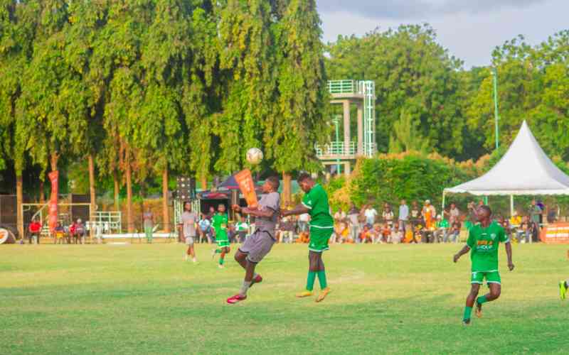 Dola Super Cup semifinal action between Kilifi (in green) and Kwale 'B'.[Courtesy]