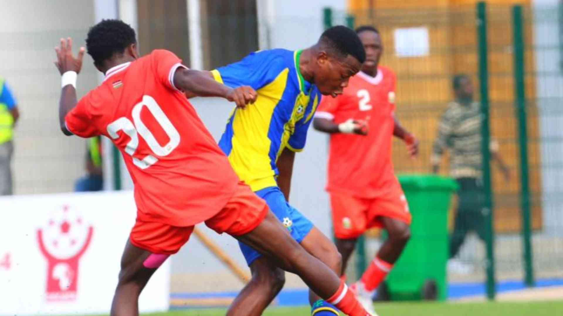 Rising Stars midfielder Kevin Wangaya (left) tackles his Tanzanian opponent during their U20 Afcon Cecafa Qualifiers Finals in Tanzania in 2024. [Cecafa Media]