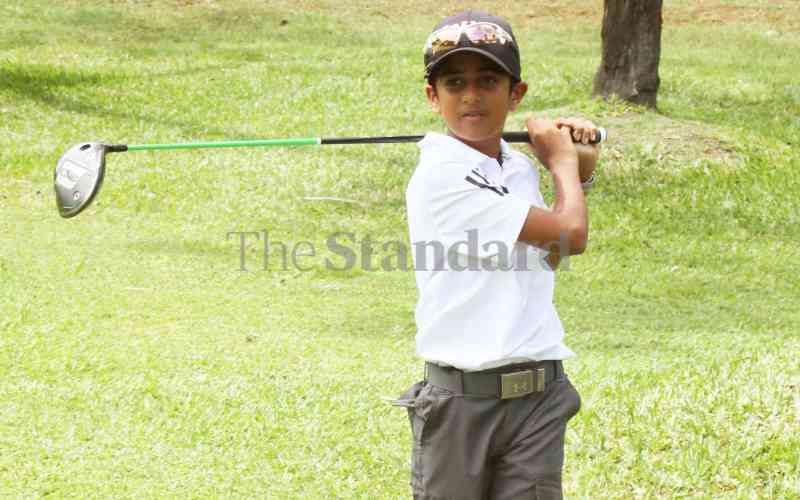 Top champion Shay Chauhan displays his swig skills during the Nyali Junior 2024 finals at the Nyali golf and Country club in Mombasa County on Sunday. [Maarufu Mohamed, Standard]