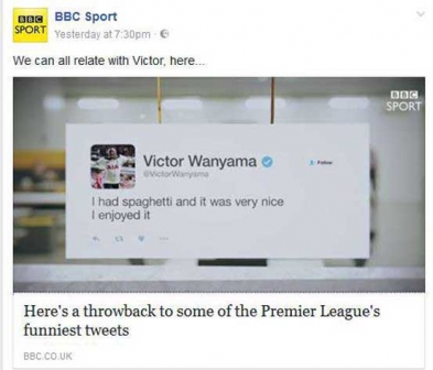 Victor Wanyama's spaghetti tweet that was published in 2012 has resurfaced and BBC Sport literally cannot handle it.