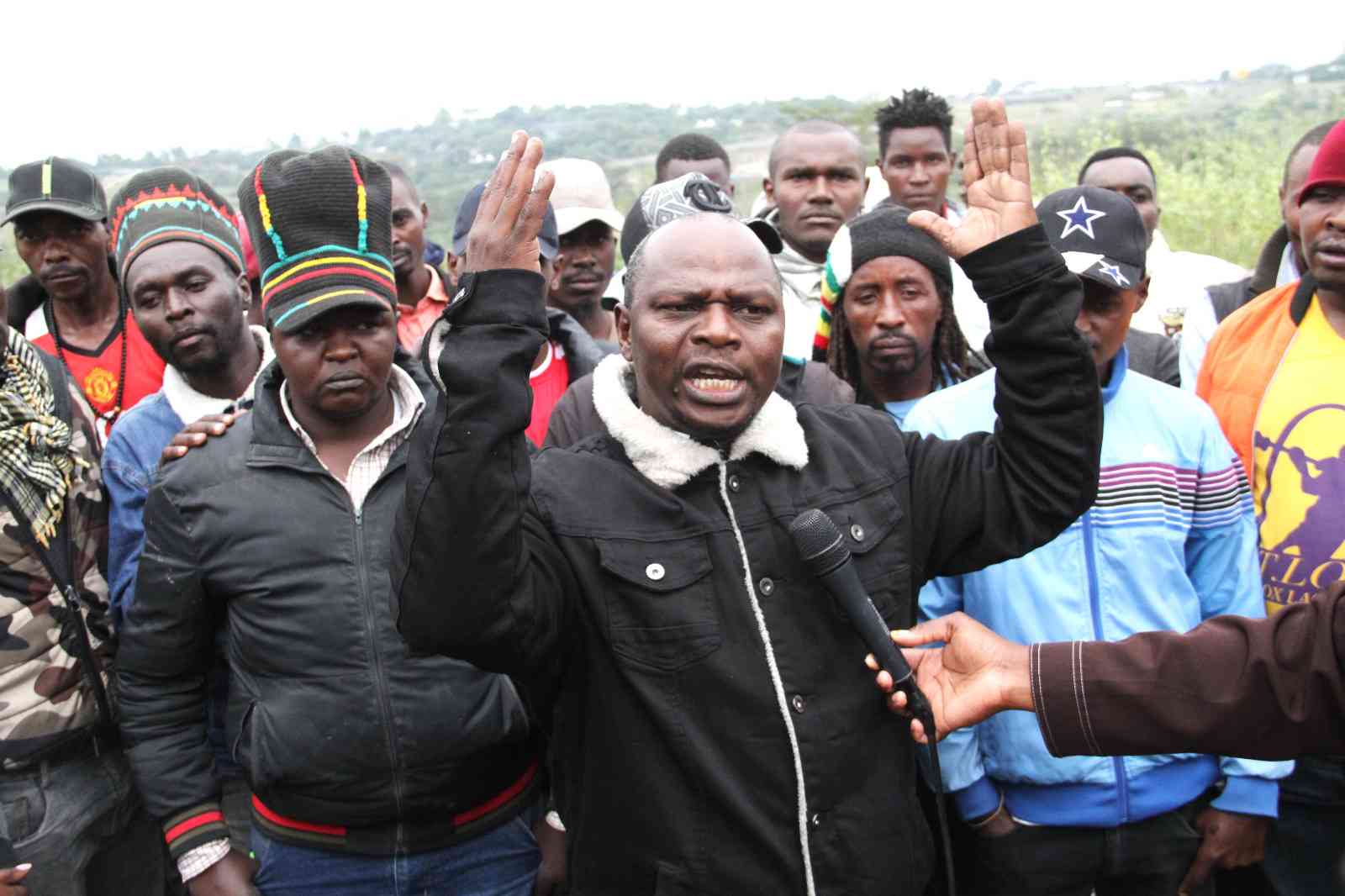 A section of Athi River residents address a press conference after thwarting police attempt to demolish their homes. [Peterson Githaiga, Standard]