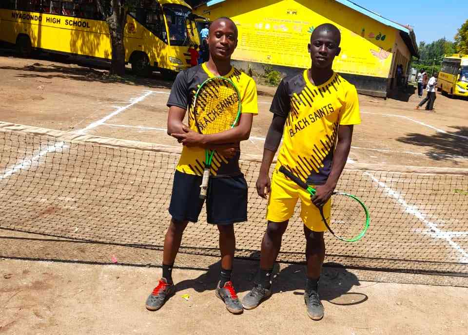 Emmanuel Madere (R) and teammate Ryan Marty after a past long tennis match in Siaya.[Washington Onyango,Standard]