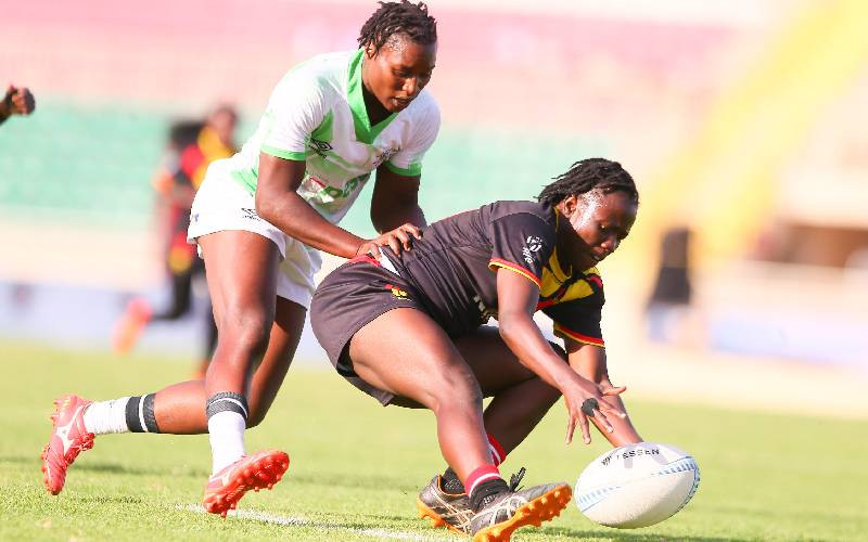 Kenya Lionesses and Uganda Lady Cranes inaction during the 2025 Safari Sevens Tournament finals at Nyayo National Stadium, Nairobi, on October 12, 2025. [Stafford Ondego, Standard]