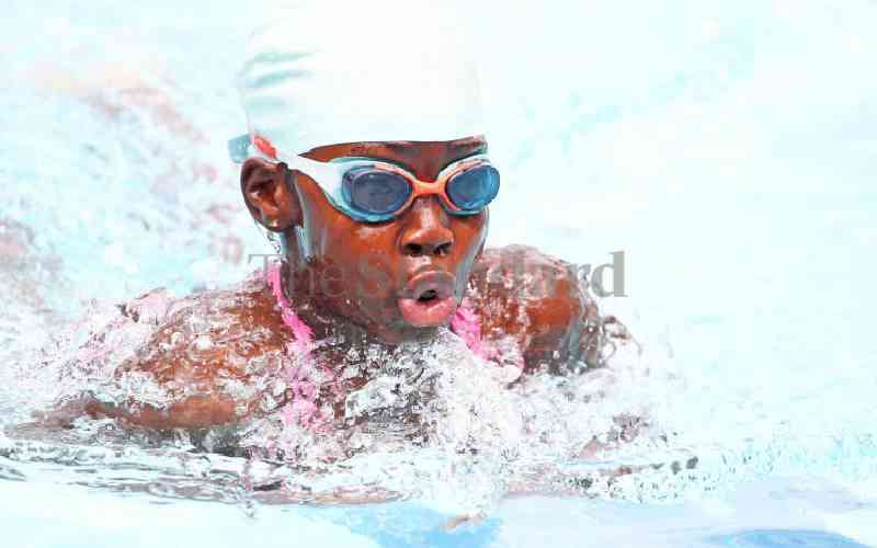 Julie Wangombe in past action at the Nairobi County Swimming Association Minnows meet at Kiota School. [Jonah Onyango, Standard]