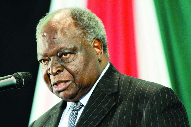 Former president Mwai Kibaki speaks during a past lecture at the University of Nairobi Taifa Hall. [Mbugua Kibera, Standard]