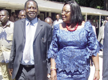 Prime Minister Raila Odinga and wife, Ida, leave Power of Jesus Around the World Church, Kisumu, after attending a wedding of their niece Lorna Oburu