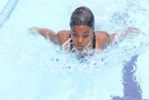 Agha Khan primary school's Salma Athman in action during a swimming competition at Agha Khan Academy in Mombasa County on Saturday 28th April 2018. [Photo: Courtesy]